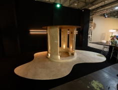 “A Marmomac siamo presenti ormai da molti anni- spiega l’amministratore delegato di Eurobuilding Umberto Antonelli. “ Quest’ anno ci hanno chiesto di realizzare un’ opera originale, dal momento che veniva allestito per la prima volta un padiglione dal tema “A matter of store”, curato da Elle Decor Italia proprio per mettere in mostra tutte le potenzialità della pietra naturale espresse oggi da architetti e designer e rese possibili dal know-how delle aziende più talentuose. Il nostro architetto e mio amico Alessandro Agrati, uno stilista ispirato dalla filosofia del benessere e purtroppo scomparso proprio pochi giorni prima della manifestazione, ha progettato Impluvium utilizzando il nostro travertino. Una SPA vera e propria che lui ha voluto producesse tutti i suoi caratteristici effetti benefici”.