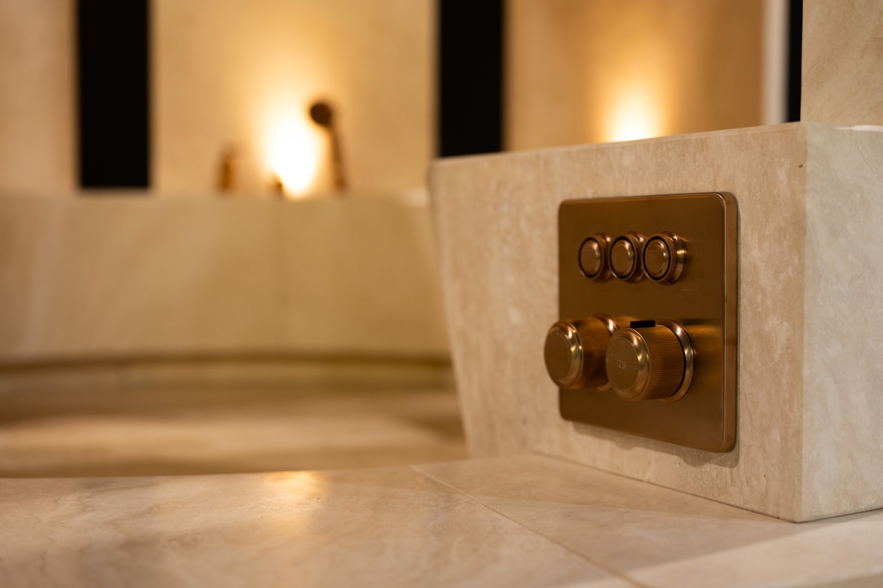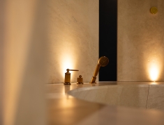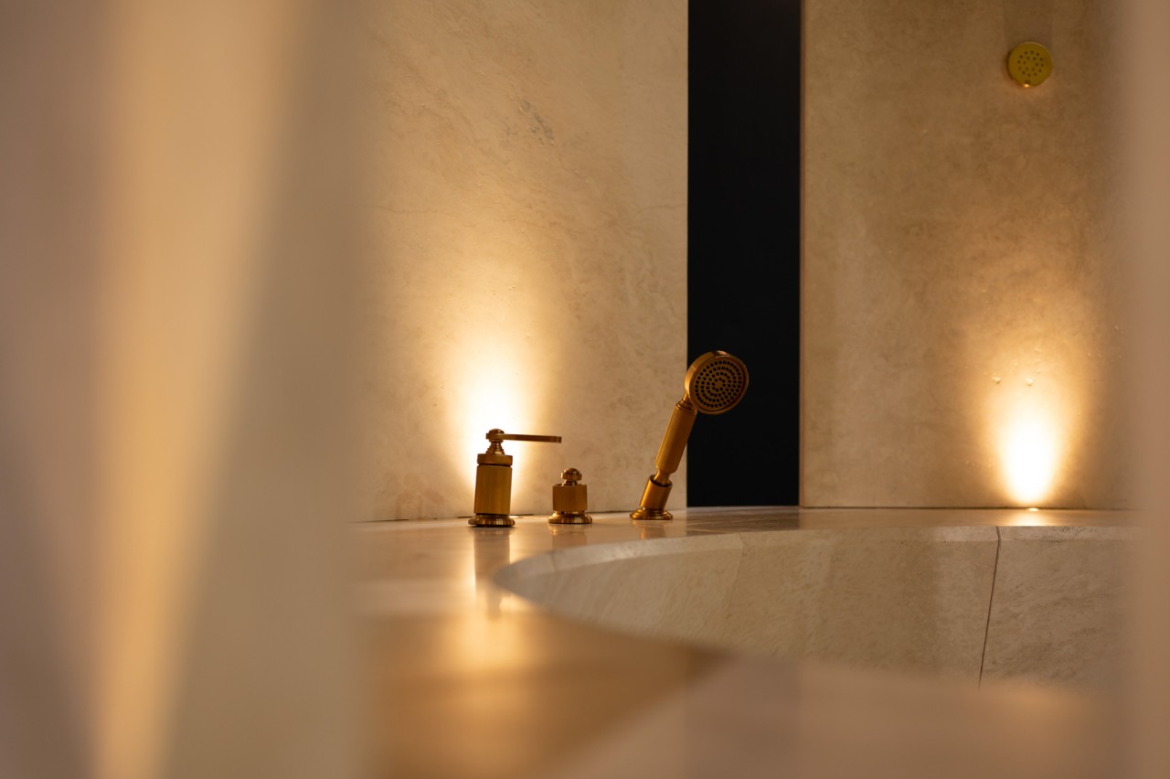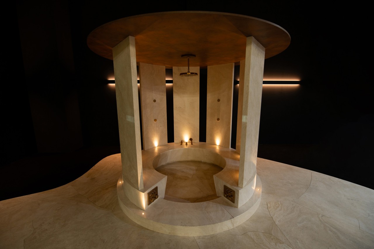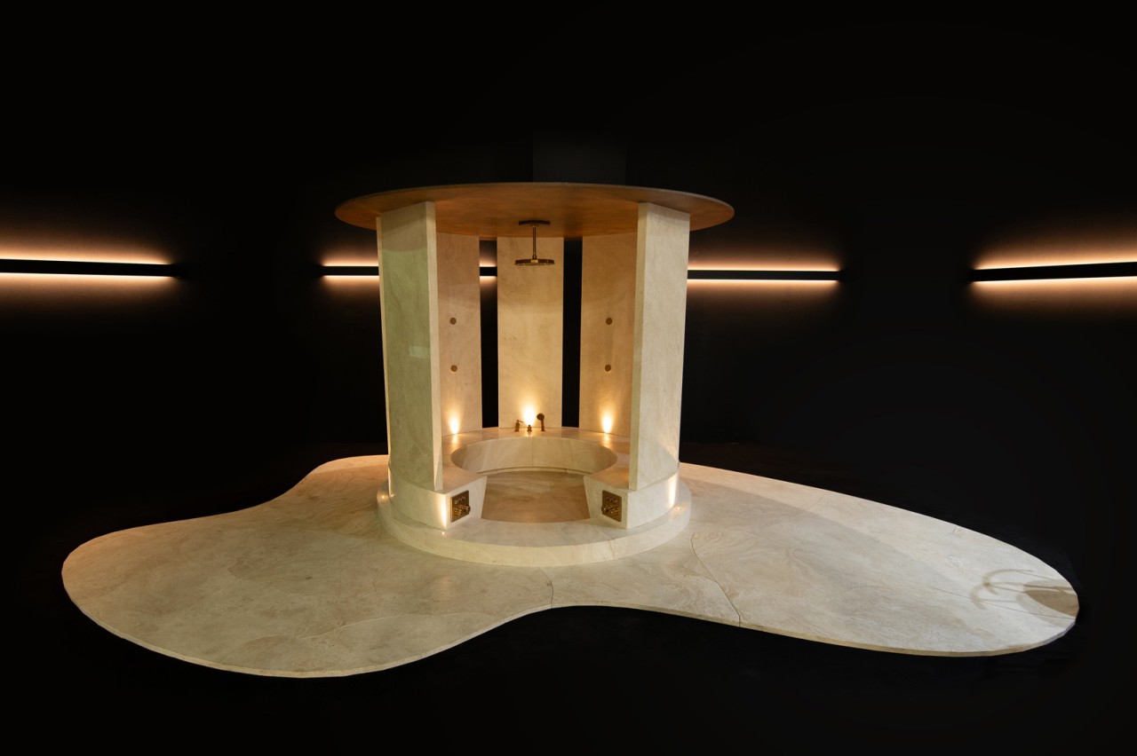 La SPA in travertino realizzata da Eurobuilding e disegnata da Alessandro Agrati