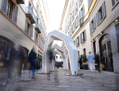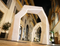 Il progetto ha proposto una rilettura dello spazio urbano come palcoscenico in cui luce, materia e design si fondono per dare vita a una scenografia inedita.